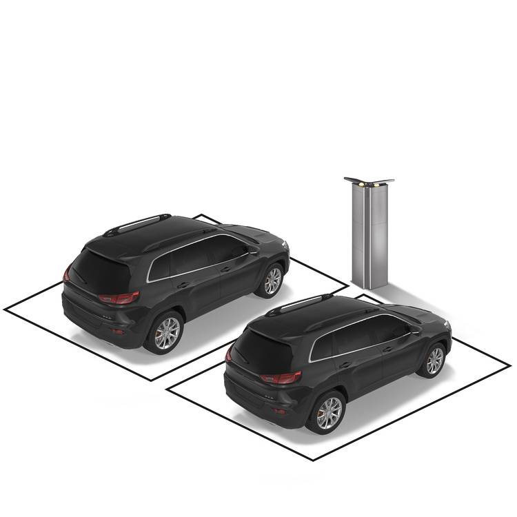 Ebenfalls für zwei Wallboxen, aber im 45°-Winkel zum Stellplatz an der Stele angebracht, ist die Ausführung „Advanced“ ausgelegt. Sie verbessert das Ladekabel-Handling und ist die passende Lösung für stirnseitige Parkplatzsituationen. eFlex Comfort eignet sich für bis zu vier Wallboxen, sodass Elektroautos auf je zwei nebeneinander und zwei gegenüber liegenden Stellplätzen frische Power tanken können.