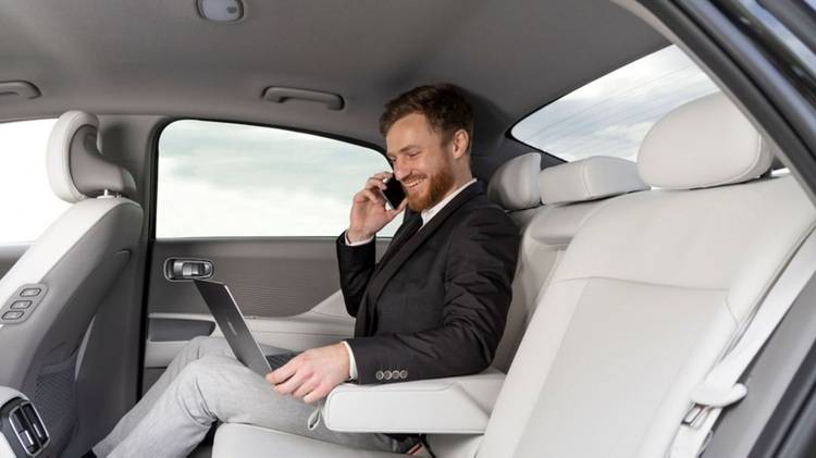 Mit der Electric Global Modular Platform (E-GMP) bietet der IONIQ 6 eine herausragende Beinfreiheit. Praktische Details wie ein brückenartige Mittelkonsole und vielfältige Anschlussmöglichkeiten verwandeln das Fahrzeug in ein mobiles Büro der Extraklasse.
