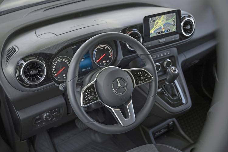 Stellt man Vergleiche an zwischen dem Mercedes Citan und dem Renault Kangoo, dann kann der Kleine mit Stern beim Interieur deutlich mehr glänzen. Zwei Ausstattungslinien sind beim eCitan möglich: Base steht für die Basiseinrichtung und Pro eröffnet den Gesamtumfang aufpreispflichtiger Optionen, unter anderem mit Designpaket und zahlreichen Assistenzsystemen. Insbesondere ist von Bedeutung, dass Daimler inzwischen auch für den Citan das optionale Multimediasystem MBUX (Mercedes Benz User Xperiants) anbietet. Unter anderem kann dadurch die herkömmliche Weise der Car-Navigation mit einer deutlich präziseren Zielführung kombiniert werden. Möglich ist dies durch die Kooperation von Daimler und dem innovativen Softwareunternehmen What Three Words.