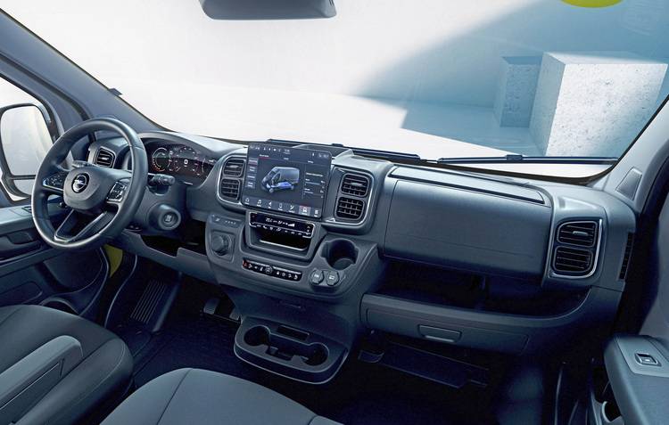 Im neugestalteten Cockpit, dessen Instrumentenbord mit großem Display deutlich Pkw-ähnlicher als bei Vorgänger-Versionen wirkt, kann man mehr als 20 Assistenten aktiv werden lassen. Dabei geht es nicht allein um elektronische Helfer wie Parksensoren oder Frontkollisionswarner & Co. Opel kündet auch von assistiertem Fahren auf Level 2. Damit ist die optionale Fähigkeit überschrieben, dass die Kombination aus Geschwindigkeitsregler mit Stop & Go-Funktion, Spurhalte- und Stauassistent dafür sorgen kann, dass der Movano bei Geschwindigkeiten bis zu 30 km/h – zum Beispiel im stockenden Verkehr – selbstständig lenken, bremsen und beschleunigen kann (Aufpreise in zwei Stufen: 1.200 bzw. 1.700 Euro).