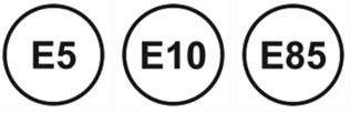Benzinartige Kraftstoffe: Ihr Symbol ist ein Kreis. Das "E" steht hier für die spezifische Biokomponente im Ottokraftstoff. E10 enthält also zehn Prozent Biokraftstoff. Über die Oktanzahl wird hier nichts gesagt.