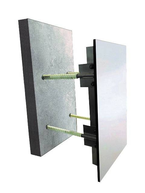 Im Vergleich zu Alu- oder Edelstahl-Wandhaltern benötigt der Isolink Typ TA-S im Beton eine geringe Bohrlochtiefe und eine Verankerungstiefe von nur 40 mm. Dadurch verringert sich die Gefahr, dass beim Bohren der Löcher die Bewehrung des Betons getroffen wird. Da nur der stabförmige Isolink die Dämmung durchdringt, ist zudem sichergestellt, dass die Dämmung immer vollflächig auf der Betonwand aufliegt. Auftragende Wandkonsolen oder ein Thermostopp entfallen – und damit auch das Risiko, dass sich Hohlräume zwischen Dämmung und Wand bilden. Der Isolink zeichnet sich zusätzlich durch seine hohe Tragfähigkeit aus.