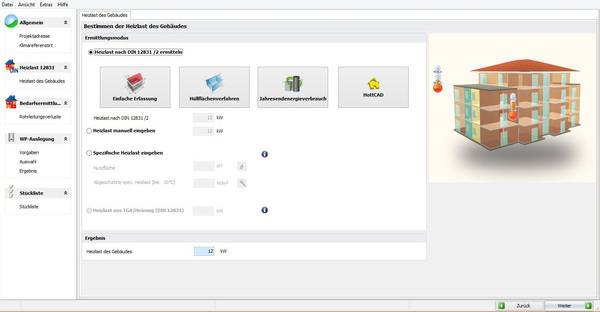 Eine Auslegung bezieht sich dabei z.B. auf ermittelte Normwerte wie Wärmebedarf, Spitzenvolumenstrom und viele mehr. „HS PROFI-PLAN 3D PLUS“ von Hottgenroth beinhaltet dabei drei Programmteile: Wärmepumpenauslegung, KWK-Auslegung und die Auslegung von Kesseln und Speichern (HS DIM-PLAN 3D). In den Berechnungen enthalten sind die Ermittlung der Gebäudeheizlast nach DIN EN 12831-2, die Abschätzung und Berechnung der optimalen Pufferspeichergröße via N-Zahl-Methode und Wärmeschaubild, sowie die einfache Berechnung der Rohrleitungsverluste nach DIN 18599-5. Die zusätzlich integrierte CAD von Hottgenroth (HottCAD) ermöglicht die Datenübernahme oder das Erstellen von Grundrissen und 3D-Modellen der Gebäude.