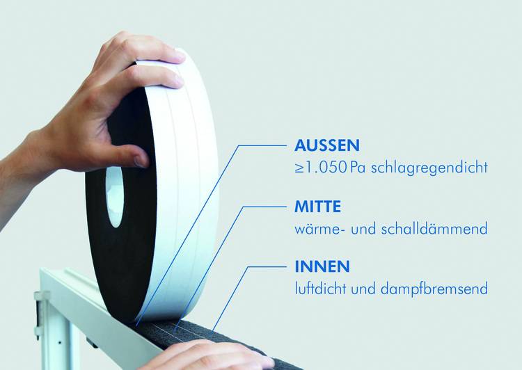 Bemerkenswert ist auch die Expansionsfähigkeit des Multifunktionsfugendichtbands. Unregelmäßige Fugenverläufe und Bauteilbewegungen können so dauerhaft ausgeglichen werden. Durch einen außergewöhnlich hohen Fugeneinsatzbereich können mit nur einer Banddimension Fugen von 6 – 40 mm abgedichtet werden. Dabei ist das Produkt in Bandbreiten von 30 - 100 mm passend zu den entsprechenden Fensterbautiefen erhältlich.