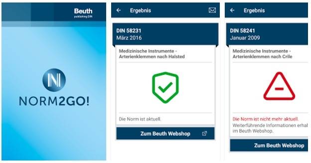 Mit der kostenlosen App NORM2GO können Nutzer sekundenschnell feststellen, ob sie mit der richtigen Version einer DIN-Norm arbeiten. NORM2GO erleichtert den Umgang mit Normen im täglichen Geschäft und unterstützt so Anwender, technologische und sicherheitsrelevante Standards einzuhalten.
