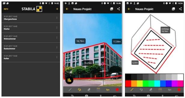Man kann nie genug Apps für die Aufmaß haben. Mit der App STABILA Measures können nicht nur Zeichnungen von Räumen und Objekten erstellt, sondern auch PDF-Dateien sowie Bilder aus der Galerie importiert und direkt bemaßt werden. Die mobile Anwendung ist kompatibel mit den STABILA Laser-Entfernungsmessgeräten LD 520 und LD 250 BT.