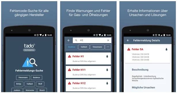 Die Entschlüsselung kryptischer Fehlercodes an Heizungsanlagen gehört der Vergangenheit an. Tado hat eine App entwickelt, die insgesamt 10.000 Fehlercodes von mehr als 800 Herstellern in Klartext übersetzt. Der Vorteil: Jeder Techniker kann sich den Fehlercode einer Heizungsanlage über sein Smartphone in eine verständliche Diagnose verwandeln lassen. Die kostenlose App liefert eine Fehlerbeschreibung, nennt mögliche Ursachen und bietet darüber hinaus konkrete Vorschläge zur Entstörung an.