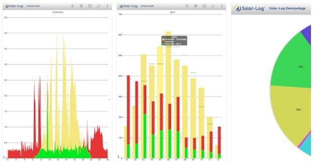 Die App Solar-Log visualisiert die Ertragsdaten einer Photovoltaikanlage. Die Daten werden in einer Tages-, Monat-, Jahres- und Gesamtansicht übersichtlich dargestellt und können mit ihrem Soll-Ertrag verglichen werden. So lassen sich beispielsweise auf einer Pinnwand individuelle Ansichten von einer oder mehreren PV-Anlagen darstellen. Tagesaktuelle und historische Anlagendaten sowie angeschlossene Komponenten (z.B. Wärmepumpe oder Heizstab) können übersichtlich visualisiert werden. Über das News Center bleiben Nutzer stets auf dem Laufenden. Sowohl für Android als auch für iOS sind die Apps kostenlos.