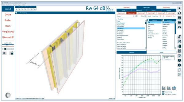 Mit Bastian, CadnaA und CadnaR von DataKustik, Iris und Insul von Marshall Day Acoustics und SONarchitect ISO von Sound of Numbers werden auch verschiedene Berechnungs- und Simulationsprogramme zur Berechnung bauakustischer Eigenschaften offeriert. Die Programme ermöglichen die bauakustische Analyse einzelner Baumaterialien, Bauteile oder kompletter Räume, die Berechnung der Luft- und Trittschallisolierung innerhalb von Gebäuden, die Luftschalldämmung gegen Außenlärm, die Schallübertragung von Räumen ins Freie und die Schallabsorptionen in Räumen.