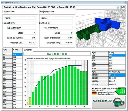 Auch das Verhalten von Bauteilen, etwa von Schallschutzfenstern, bei unterschiedlichen akustischen Einwirkungen, wie Bau-, Straßen- oder Fluglärm oder die Schalldämmeigenschaften von Trockenbaukonstruktionen werden virtuell hörbar. Damit sind Planer in der Lage, Bauherren die akustische Qualität von Räumen oder Bauteilen unmittelbarer zu vermitteln und den Nutzen akustischer Maßnahmen anschaulich zu demonstrieren.