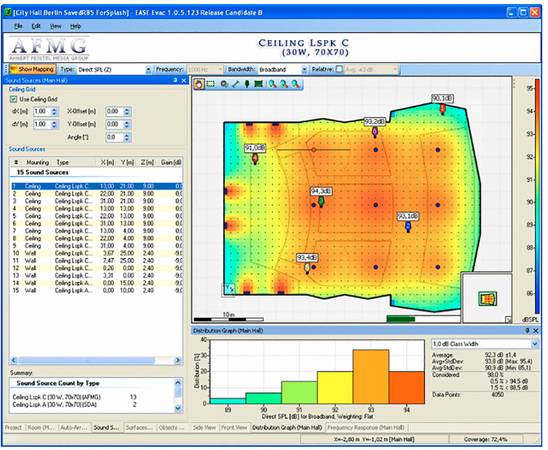 Ease von AFMG Technologies dient der raumakustischen Simulation von Innenräumen und Freiflächen. Werden in Innen- oder Freiräumen den verwendeten Wand- und Deckenmaterialien akustische Eigenschaften zugeordnet, lassen sich alle relevanten akustischen Parameter und Eigenschaften berechnen. Die Platzierung von Schallquellen wird von einer umfangreichen Datenbank unterstützt. Die berechneten akustischen Eigenschaften lassen sich per Auralisationsmodul Ears hörbar machen.