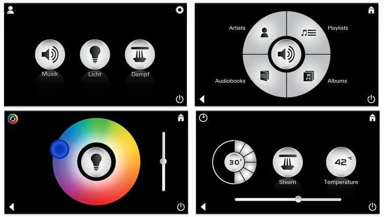 Decken-, Seiten- und Handbrause sowie Dampfgenerator werden je nach Geldbeutel kombiniert. In Kombination mit einem Sound-Modul kann die App unter der Dusche die persönliche Playlist abspielen. Was will man mehr im hauseigenen Traumbad?