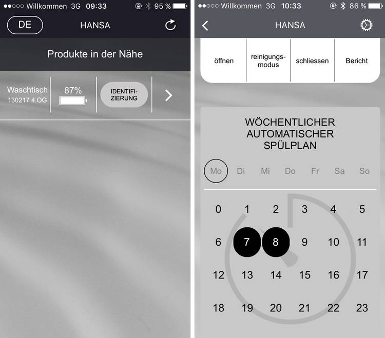 Die Hansa App, die es zunächst für drei Modelle der Armaturenserie HANSAELECTRA, die berührungslosen Varianten der HANSAMEDIPRO und das Dusch-System HANSAEMOTION Wellfit gibt, richtet sich in erster Linie an Gebäudetechniker. Mithilfe der App können Profis die Einstellungen von speziellen Armaturen oder Dusch-Systemen an veränderte Nutzerbedürfnisse im Badezimmer anpassen und auf Knopfdruck warten. Dafür aktiviert der Installateur oder Techniker zunächst die Bluetooth-Funktion auf seinem mobilen Endgerät. Die installierten Hansa-Produkte innerhalb einer Reichweite von zehn Metern werden von der App automatisch gefunden und aufgelistet.