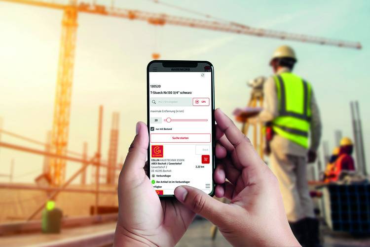 Ein Fachhandwerksbetrieb arbeitet an einem Projekt außerhalb seiner Region – ein Betrieb aus Bayern beispielsweise in Berlin – und braucht auf die Schnelle ein Produkt. Auf Grundlage der GPS-Daten seines Smartphones, der Eingabe der Postleitzahl oder der Adresse der Baustelle zeigt die Umkreissuche die nächstgelegenen Abholstandorte an, in denen er den Artikel findet – inklusive Entfernungsangabe. Das schafft Orientierung und Handlungsfähigkeit.