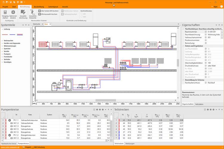 Heizungsrohrnetz mit Planungssoftware berechnen