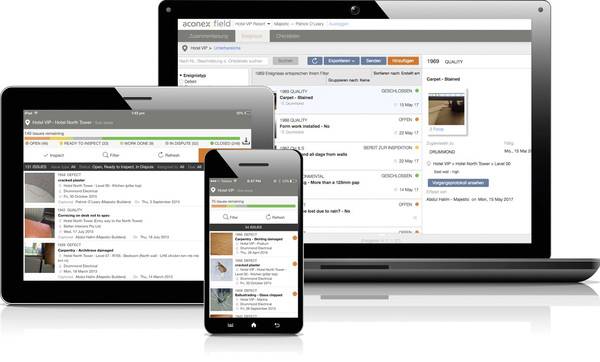 Mit mobilen Apps lassen sich bei der Dokumentation Medienbrüche vermeiden und Arbeitsabläufe optimieren. Das umständliche Hantieren mit Notizblock, Plan, Diktiergerät und Fotoapparat entfällt, stattdessen werden mit Smartphones oder Tablets und den entsprechenden Apps die Baustellendaten direkt in Wort und Bild digital erfasst und zugeordnet. Eingabemasken mit strukturierten Abfragen zu Projekt, Ort, Gewerk, Auftrag, Unternehmer, Subunternehmer, Mangel, Beseitigungstermin, Priorität etc. sowie Textbausteine in der App beschleunigen die Erfassung und sorgen dafür, dass bei der Dokumentation Wichtiges nicht vergessen wird.