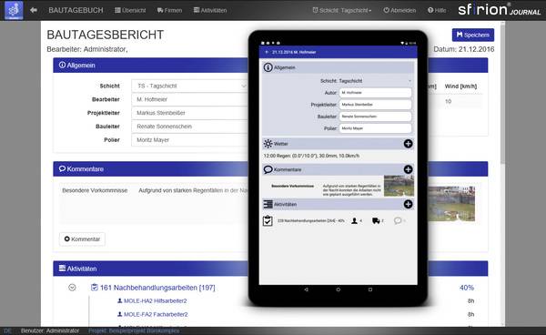 Mit der digitalen Dokumentation entsteht zudem quasi nebenbei eine Datenbank für den Bau, die etliche Fragen beantworten kann: Wer war wann auf der Baustelle? Welche Zusatzarbeiten mussten erledigt werden? Wer muss noch welche Mängel bis wann beseitigen etc.? Diese Daten können später auch für die Beweissicherung, Gewährleistungsdokumentation oder für Statistiken und zur Qualitätsverbesserung genutzt werden. Dadurch spart man beim Bau wesentlich an Zeit und beschleunigt Prozesse.