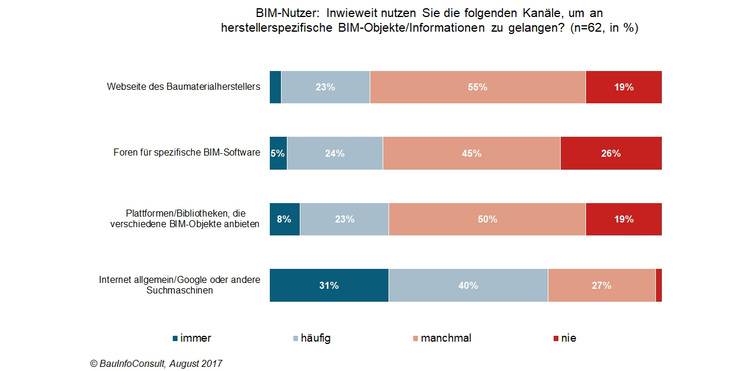 - Welche Informationskanäle und Bezugsquellen werden für BIM genutzt? Welche Rolle spielen z.B. BIM-Bibliotheken, Herstellerwebsites oder Verbandsinformationen?