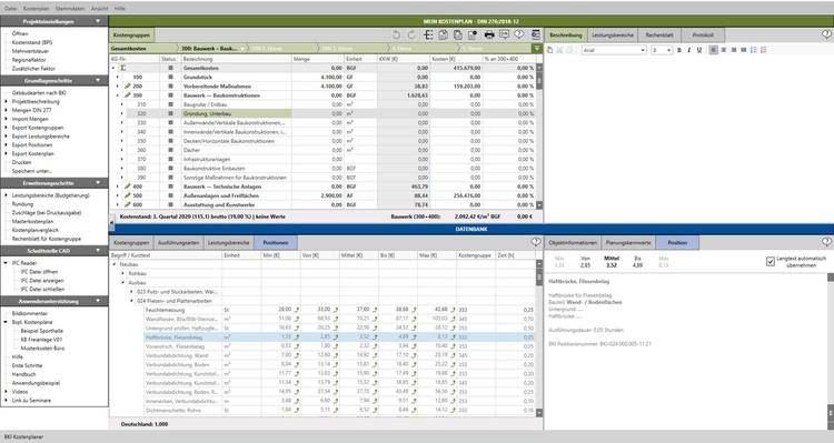 Mit der neuen Version unterstützt BKI Schnittstellen zu gängiger CAD- und AVA-Software. Aus Archicad (GRAPHISOFT), AUTODESK REVIT (mit BIM-Booster), VECTORWORKS, ELITECAD übernimmt der Kostenplaner die wichtigen Kostenbezugsgrößen für die Kostenschätzung und Kostenberechnung. Zudem gewährleistet das Programm-Modul „IFC-Reader“ das Einlesen von IFC-Dateien inklusive Kostengruppen-Kontroll-Funktion nach Bauteilen. Auf dem neuesten GAEB-Stand ist auch die Übergabe von Kostenplänen nach DIN 276 und zur Budgetierung nach Leistungsbereichen ins AVA-Programme. Mit der GAEB-Schnittstelle (GAEB DA XML 3.3 X51) gelingt dies einfach und schnell.