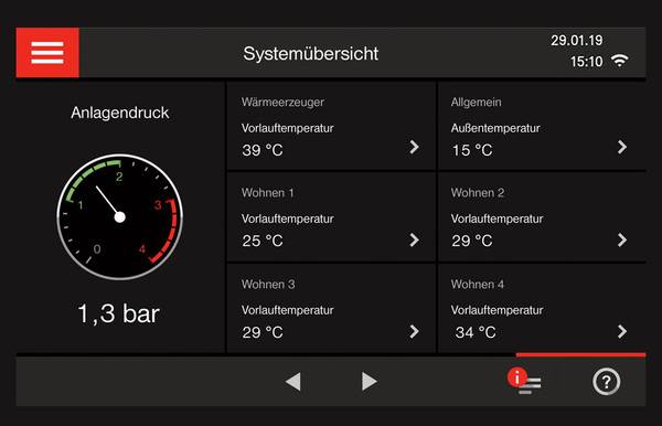 Zudem stehen unabhängig von der Art der Energieerzeugung standardisierte Elektronik- und Hydraulikschemen zur Verfügung. Zur vereinfachten Wartung tragen außerdem einheitliche Sensoren bei. Display-Anzeigen, die der Kommunikation mit dem Energieerzeuger dienen, sind bis auf die Unterschiede der jeweiligen Anlagentechnik (Wärmepumpe, Gas-Brennwertgerät etc.), weitgehend identisch.