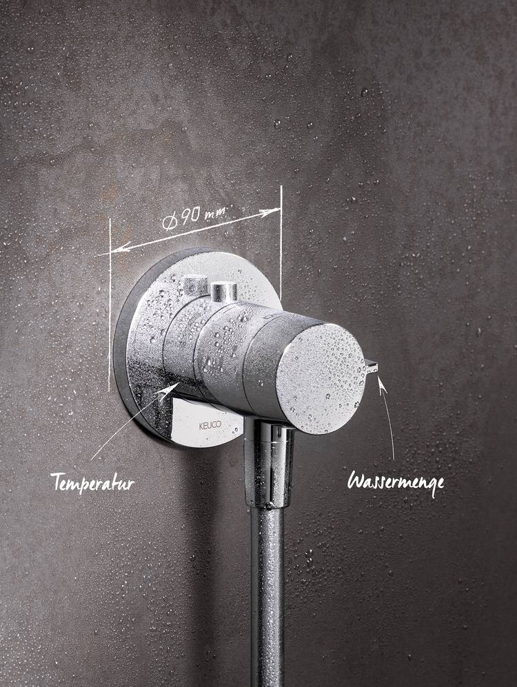 Das IXMO_solo Thermostat von Keuco sammelt weitere Pluspunkte durch eine äußerst flache Einbautiefe von minimal 65 mm. Dadurch ist vor allem der Einbau in dünnen Wänden oder bei der nachträglichen Modernisierung problemlos möglich. Die Einbautiefe lässt sich dank Tiefenausgleich von 65 mm bis zu 95 mm stufenlos einstellen.