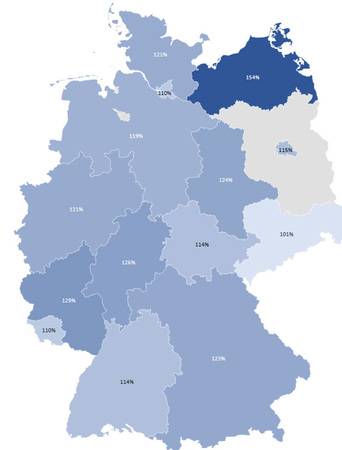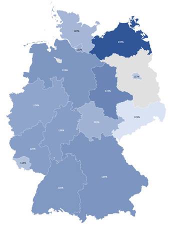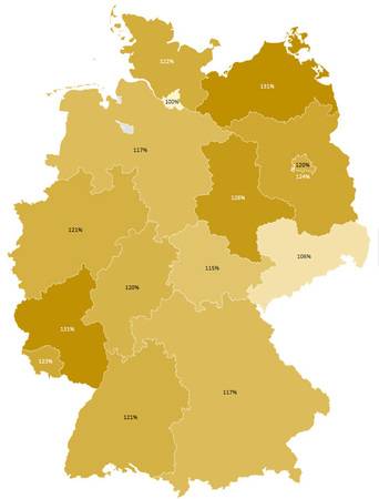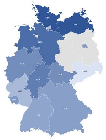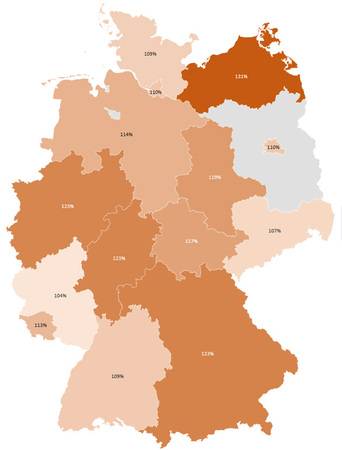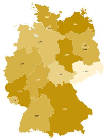 Nachfolgend sind die bundeslandspezifischen Umfrage-Ergebnisse nach den kostenrelevanten ausgewählten Leistungsbereichen abgebildet: