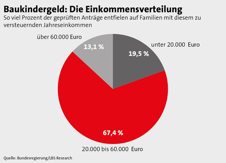 Von allen bisher positiv beschiedenen Baukindergeldanträgen entfallen 62 Prozent auf Familien mit einem zu versteuernden Jahreseinkommen von weniger als 40.000 Euro.