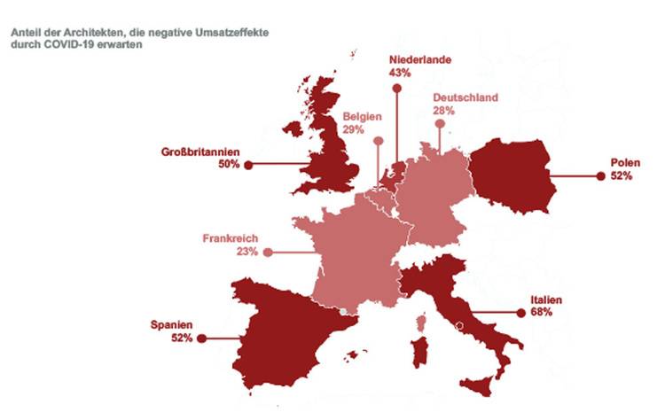 In den meisten Nachbarländern (allen voran natürlich Italien) hatten die Architekten auch schon vor dem 13. März etwas größere Verluste durch die wirtschaftlichen Folgen von Corona befürchtet.