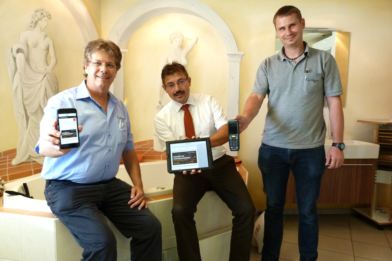 Welche Vorteile ein Scan-Service bietet, erlebt Firma Gröger im täglichen Geschäft – Lagerbestellungen werden bequem per Scanner über den GC Easy Lager-Service vorgenommen. Und die Zeiten, in denen Dusche, Wanne und Co auf ein Blatt Papier gescribbelt wurden, sind längst Vergangenheit – der 3D-Badplaner inklusive 360-Grad-Service gehört selbstverständlich zum Repertoire der Geracher.