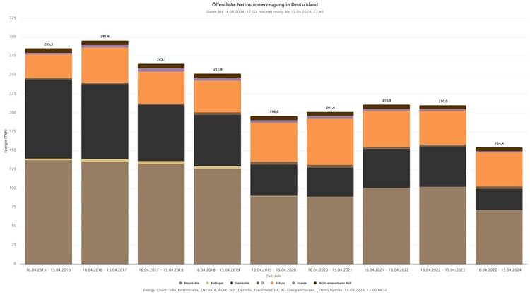 Die Auswertung des Zeitraums Mitte April 2023 bis Mitte April 2024 zeigt also, dass der Wegfall der Kernkraft in Deutschland gut kompensiert werden konnte. Entgegen den Behauptungen lag der Anstieg beim Import nicht an mangelnden Erzeugungskapazitäten in Deutschland, sondern an den günstigen Erzeugungspreisen der erneuerbaren Kraftwerke in den Alpen und in Skandinavien.