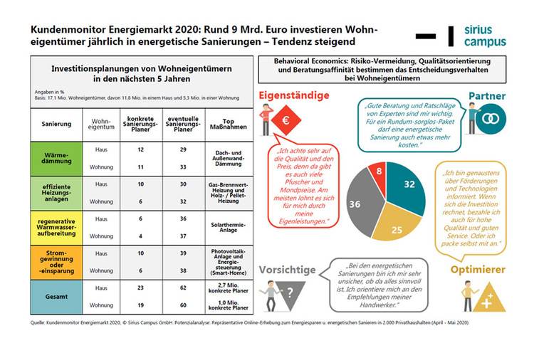 Da der Anteil der geplanten etwas über dem der realisierten energetischen Sanierungen in den letzten fünf Jahren liegt, wird ein Wachstumspotenzial für Hersteller und Handwerker sicherlich auch aufgrund des Klimapakets zur Förderung der energetischen Gebäudesanierung sichtbar. Dies sind Ergebnisse aus dem aktuellen "Kundenmonitor Energiemarkt 2020" des Forschungs- und Beratungsinstituts Sirius Campus aus Köln.