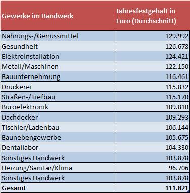 Das sind die Jahresfestgehälter im Handwerk