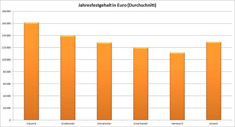 Mit welchen Jahresfestgehältern können Geschäftsführer bei Gehaltsverhandlungen rechnen? Auch hier liefert die aktuelle Studie Informationen. Die Zahlen zu den Jahresfestgehältern berücksichtigen Gewinnbeteiligungen, umfassen jedoch keine Sonderzahlungen wie beispielsweise eine Altersvorsorge.