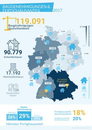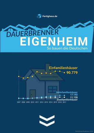 Das Bauland wird knapper und die Grundstückspreise steigen weiter an, dennoch bauen die Deutschen nach wie vor viele Eigenheime. Gerade Einfamilienhäuser sind sehr beliebt und bei der Bauform fällt die Entscheidung zunehmend auf die Fertigbauweise. So lag der Anteil von Fertigbauten bei Einfamilienhäusern im letzten Jahr bereits bei 20%. Das ist ein Anstieg von 2% im Vergleich zu 2016.