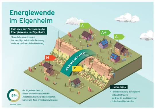79% der Verbraucher finden Klimaschutz generell wichtig, 68% wollen einen persönlichen Beitrag zur Energiewende leisten und 56% wünschen sich mehr Informationen zu Förderprogrammen und Energiesparmöglichkeiten. Das sind drei Ergebnisse aus einer Befragung, die der Heiz- und Lüftungstechnikspezialist Vaillant zusammen mit der Deutschen Umwelthilfe (DUH) durchgeführt hat. Die ca. 1.000 befragten Eigenheim- und Wohnungsbesitzer zeigten sich dabei gut informiert und schätzten die große Bedeutung ihres eigenen Verbrauchsverhaltens als Beitrag zum Klimaschutz weitgehend richtig ein.