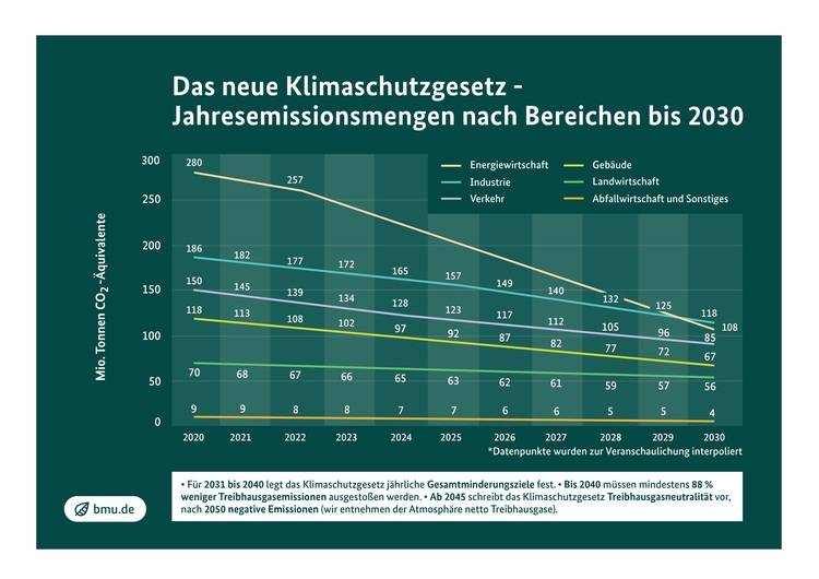 Folge des KSG 2021 ist insgesamt, dass für die einzelnen Sektorfelder (z. B. Industrie, Verkehr und Gebäude) die jährlichen CO2-Absenkungen verschärft werden. Im Gebäudesektor soll der CO2-Ausstoß bis 2030 bis auf ein Drittel des Werts von 1990 gesenkt werden.