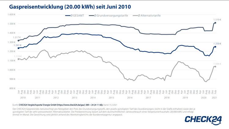 - Weil die Energiepreise 2020 aufgrund der Corona-Pandemie teilweise deutlich gesunken sind, zahlt ein Haushalt mit Gasheizung trotz des gestiegenen Heizbedarfs in der aktuellen Heizperiode 659 Euro und damit etwa so viel wie im Vorjahr.