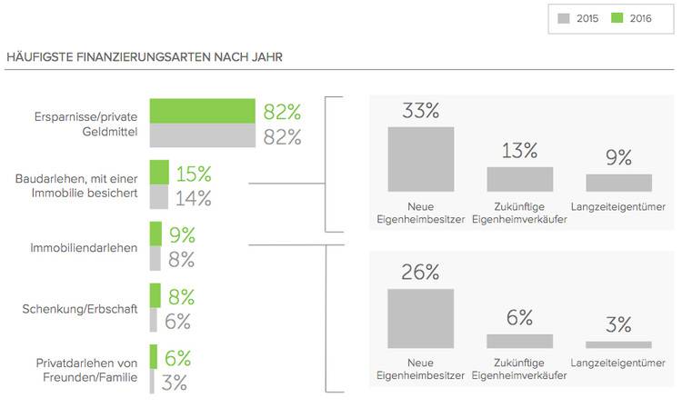 Der Großteil, nämlich 82 Prozent der deutschen Immobilienbesitzer nutzten Ersparnisse, um ihr Projekt zu finanzieren. Neue Hauskäufer nutzen dazu aber auch Darlehen ihrer Bank. Zudem ist es bei ihnen doppelt so wahrscheinlich, dass Geldgeschenke und Erbschaften genutzt werden, um ihre Renovierung zu finanzieren.