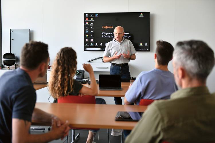 Um unsere Fachpartner auch hinsichtlich neuer Themen zu schulen, entwickelt sich das Schulungskonzept der Viessmann Climate Solutions Akademie immer weiter, neue Lernmethoden werden schnell etabliert. Diese moderne, präzise abgestimmte Lernwelt aus digitalen und analogen Formaten ist äußerst effizient, wobei die Kombination der Formate auch die persönliche Motivation der Teilnehmenden erhöht. Gemeinsam mit unseren Fachpartnern entwickeln wir kontinuierlich neue Inhalte und Formate.