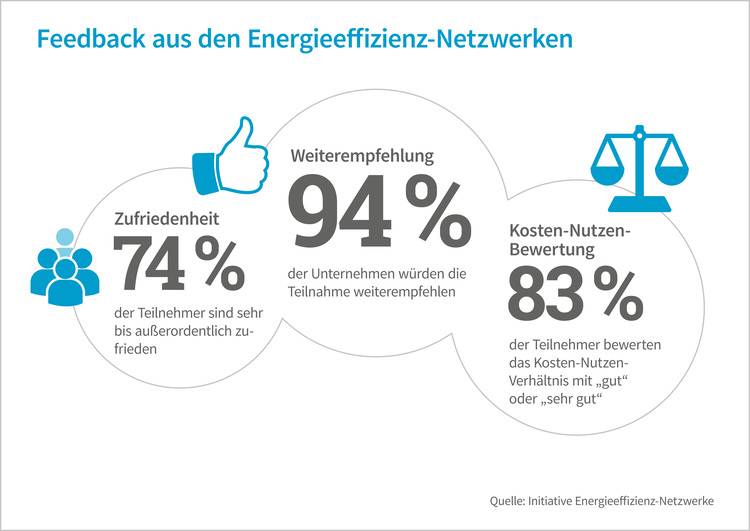 Nicht nur die Teilnehmer, auch die befragten Träger der Netzwerke sind zufrieden. Jeder zweite Netzwerkträger plant, noch im Jahr 2017 neue Netzwerke zu gründen. Netzwerkträger sind zum Beispiel Verbände und Organisationen der Wirtschaft, Energieversorgungsunternehmen, aber auch Kammern, Kommunen, Dienstleister sowie Energieagenturen. Sie organisieren die Gründung, akquirieren Teilnehmer und begleiten die Netzwerkarbeit.