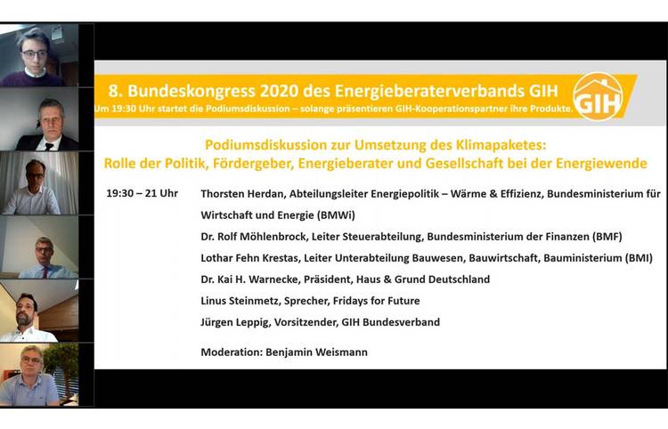 Eine hochkarätig besetzte Podiumsdiskussion auf dem Ende April online abgehaltenen Bundeskongress des größten deutschen Energieberaterverbands GIH mündete in einen überraschend breiten Konsens: Die Diskutanten waren sich einig, dass die qualifizierte und unabhängige Energieberatung forciert werden müsse und der individuelle Sanierungsfahrplan der richtige Weg zu einer erfolgreichen Energiewende im Bereich der Wohngebäude sei.