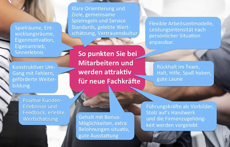 Dann werden wertvolle Potenziale der Motivation ungenutzt liegengelassen. Und man braucht sich nicht wundern, wenn der Chef einen Mitarbeiter spontan zur Besprechung ruft und der dann mit mulmigem Gefühl denkt: „Auweia, was ist jetzt wieder schief gelaufen?“ Denn, wenn alles in Ordnung war, bleibt dies ja meist unerwähnt. Eine kontinuierliche Kundenbefragung und die Weitergabe der Rückmeldungen an die Mitarbeiter ist also das „must have“ jedes Betriebs. Hier werden idealerweise nicht nur fachliche Qualitäten abgefragt, sondern auch das Verhalten der Mitarbeiter, die Qualität der Kommunikation und die Arbeitsweise.
