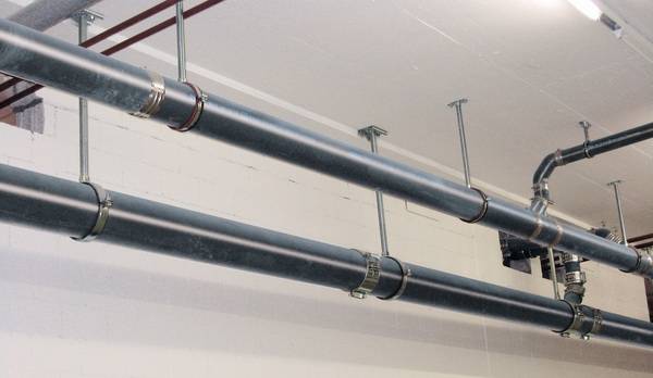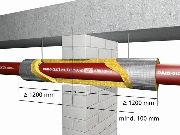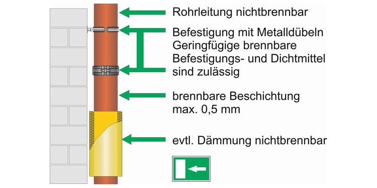Nichtbrennbare Leitungen, zum Beispiel gusseiserne Abflussrohrsysteme, dürfen in Flucht- und Rettungswegen frei verlegt werden (Bild 5).