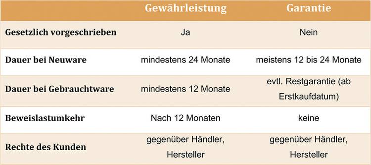 Unterschied zwischen Garantie und Gewährleistung