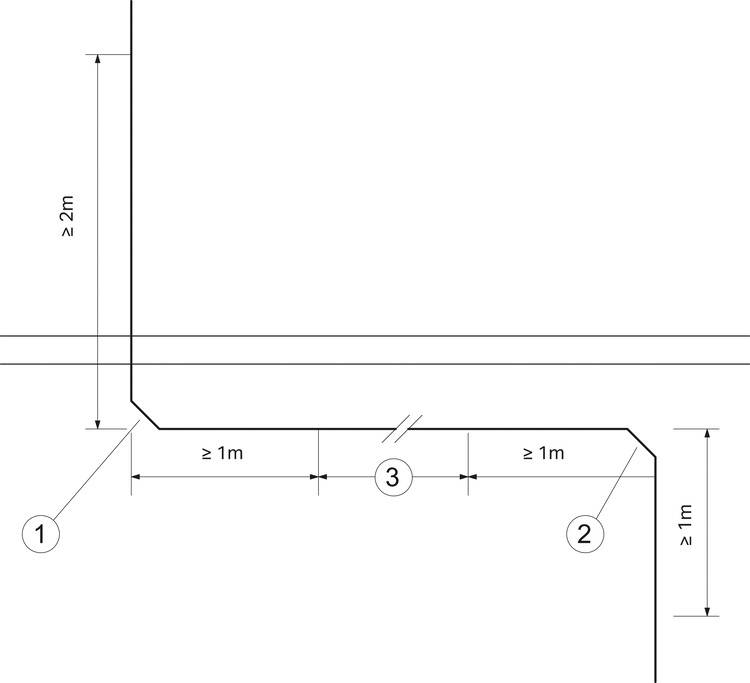 - ≥ 2m vor dem zulaufseitigen Bogen;