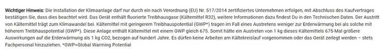 - bei der Installation keine klimaschädlichen Treibhausgase entweichen.