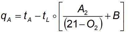 Überprüft man anhand dieser Formel den Zusammenhang von Sauerstoffgehalt im Abgas mit dem Wirkungsgrad, so zeigt sich bei ansonsten gleichen Temperaturverhältnissen die bereits beschriebene Abhängigkeit. Viel Sauerstoff im Abgas deutet auf eine weniger effiziente Verbrennung hin.