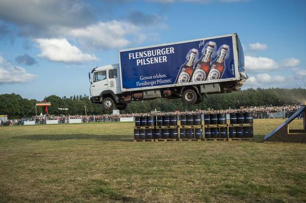 50.000 Teilnehmer waren beim Rennen von Werner-Erfinder Rötger „Brösel“ Feldmann (68) gegen Kneipenwirt Holgi Henze (74) in Hasenmoor in Schleswig Holstein dabei. Brösel machte mit 10,08 Sekunden das Rennen auf der Achtelmeile von 201 Metern knapp für sich aus.