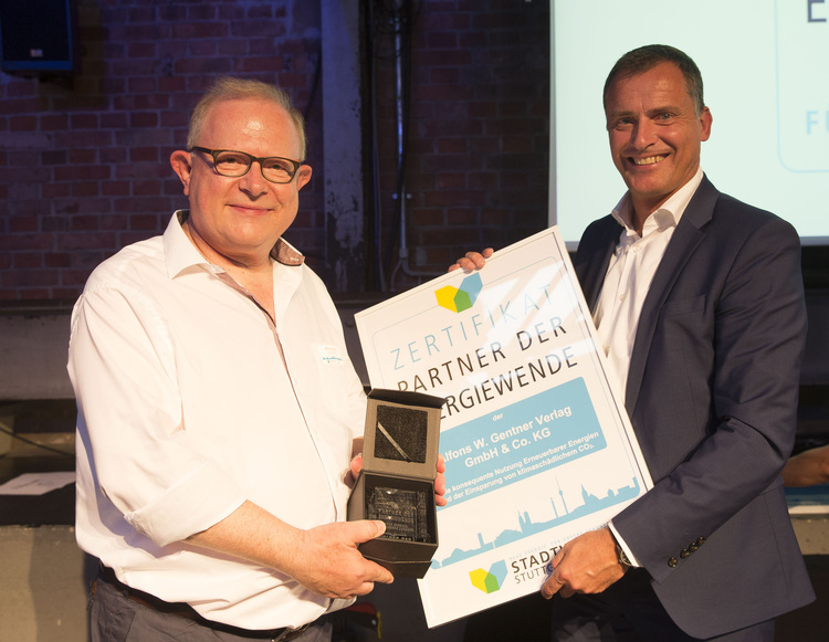 In der vergangenen Woche wurde der Alfons W. Genter Verlag von den Stadtwerken Stuttgart als "Partner der Energiewende" ausgezeichnet. Ziel der Initiative ist es, Verbündete für den Klimaschutz zu gewinnen. Der Gentner Verlag hatte bereits im Jahr 2017 die energetische Sanierung des Verlagsgebäudes abgeschlossen. Zusätzlich sind neben Photovoltaik-Anlagen auf dem Dach und an der Hausfassade auch E-Ladestationen für die Verlagsmitarbeiter installiert worden.