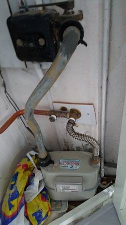Auf diese Anlagensituation stieß S. Ehrhardt (Vielen Dank!) nach dem Anruf einer Kundin: Das Gasgerät müsse umgehängt werden, damit sie wieder Warmwasser hat. Der Schornstein wurde vom Vermieter zurückgebaut (der BSM wurde darüber nicht informiert), der Abgasanschluss vom Brennwertgerät wurde dabei so belassen und mündete im Wohnzimmer. Das Brennwertgerät war noch in Betrieb, eine völlig neue Art der raumluftabhängigen Betriebsweise!